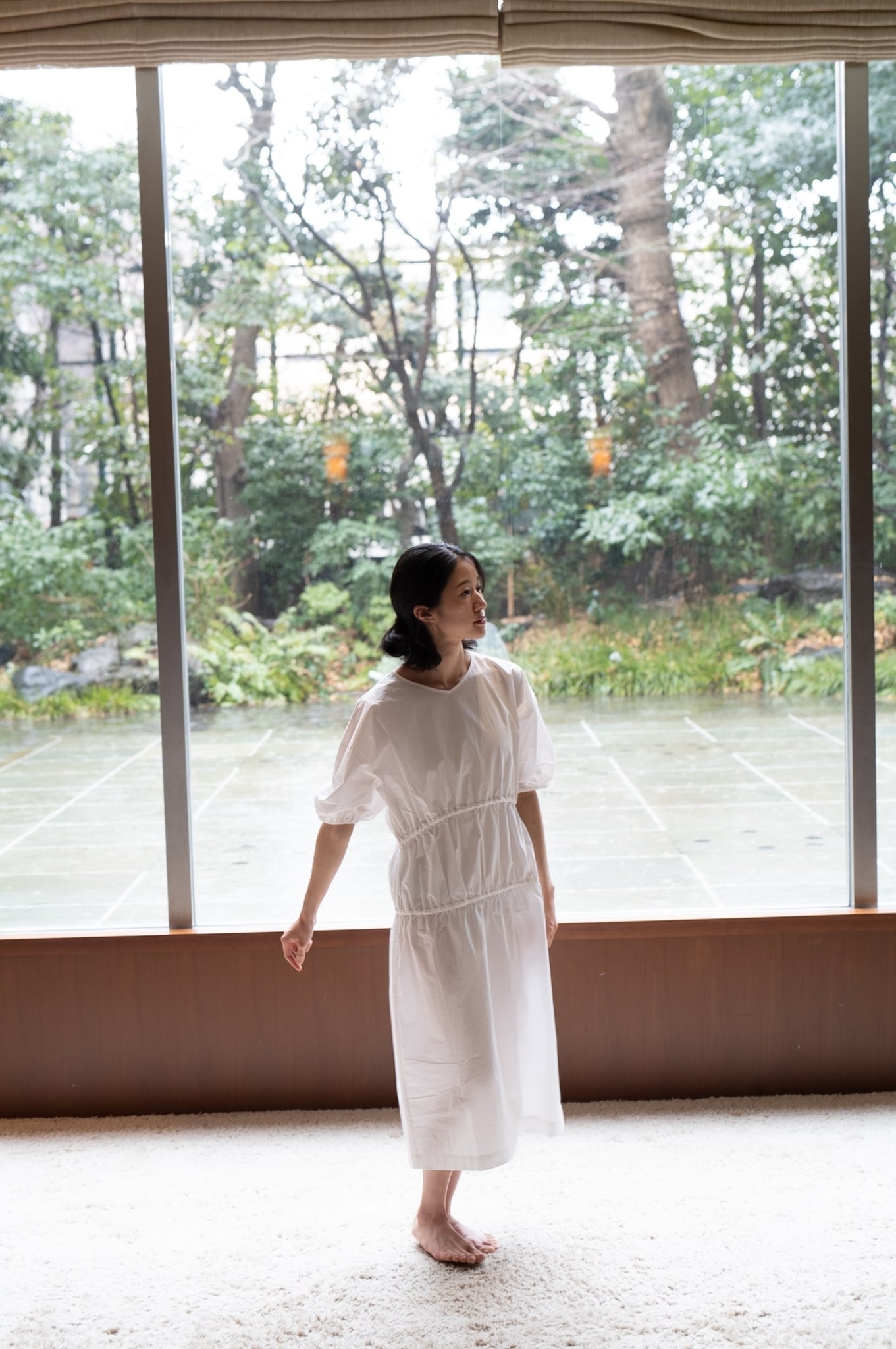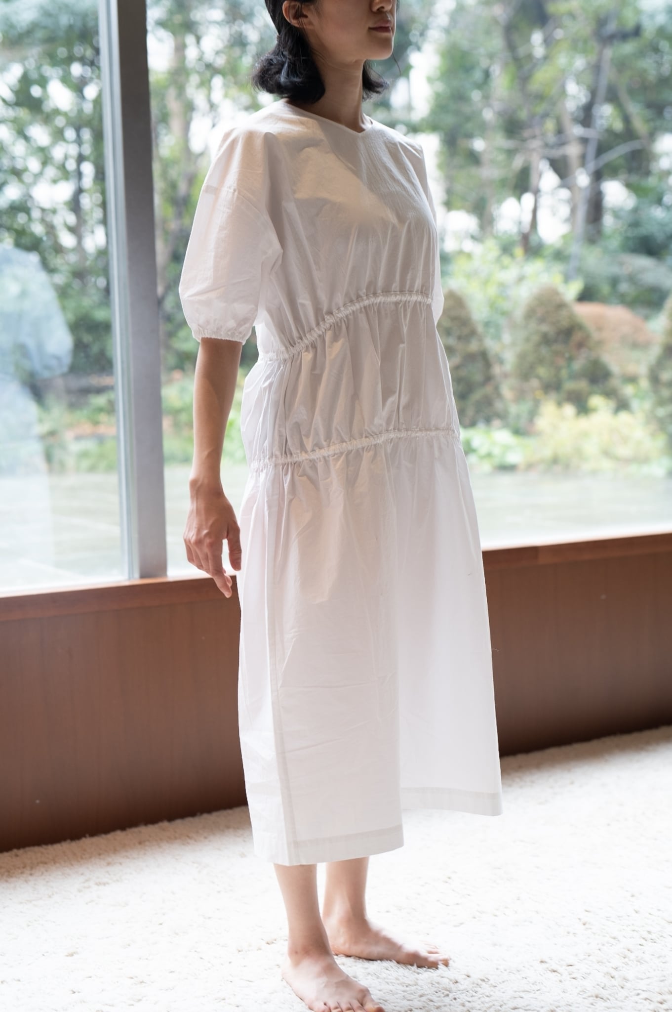 定番のコットンタイプライターを使用したドローストリングワンピース